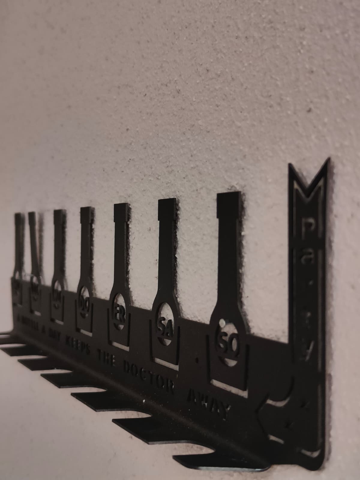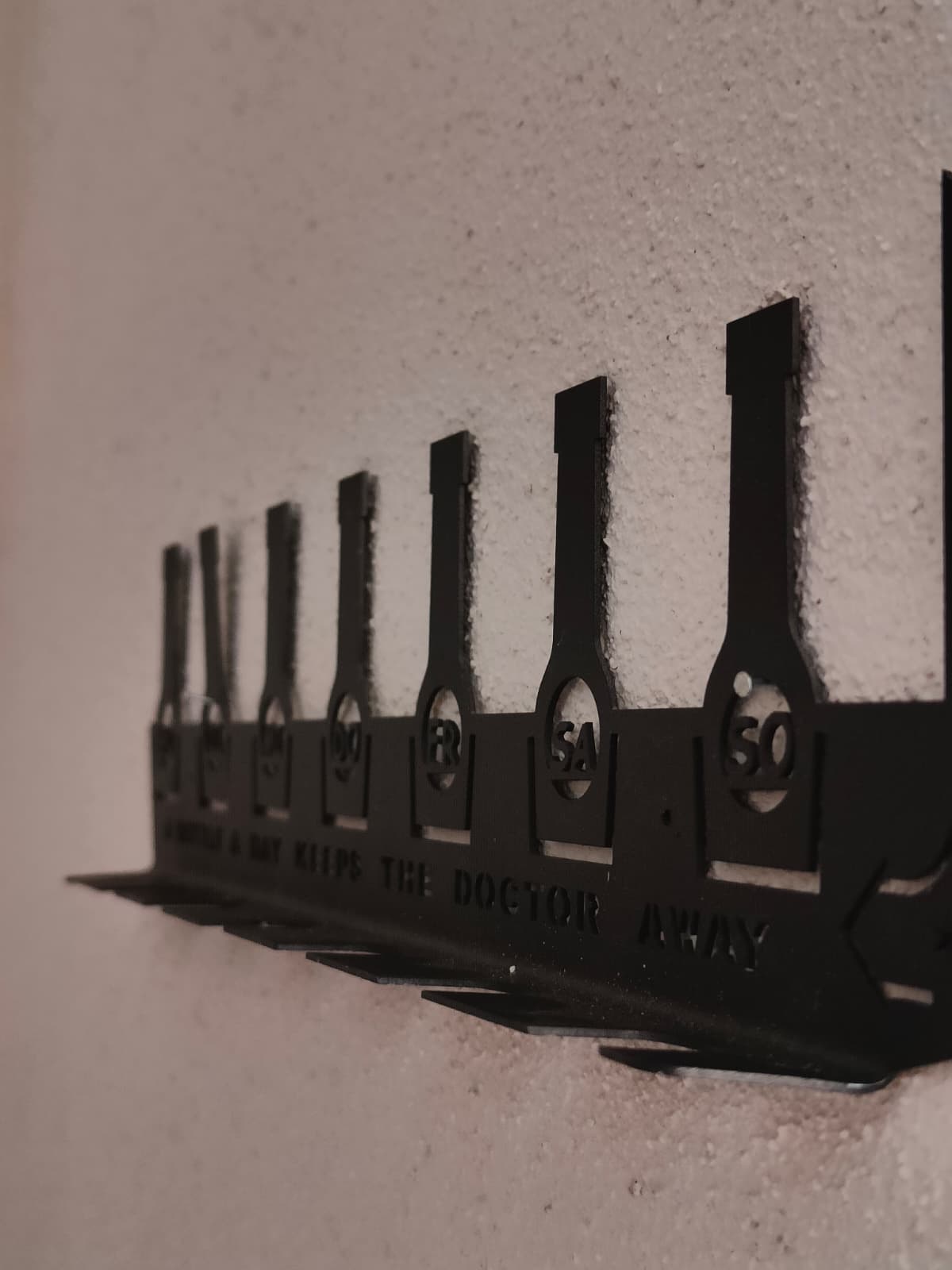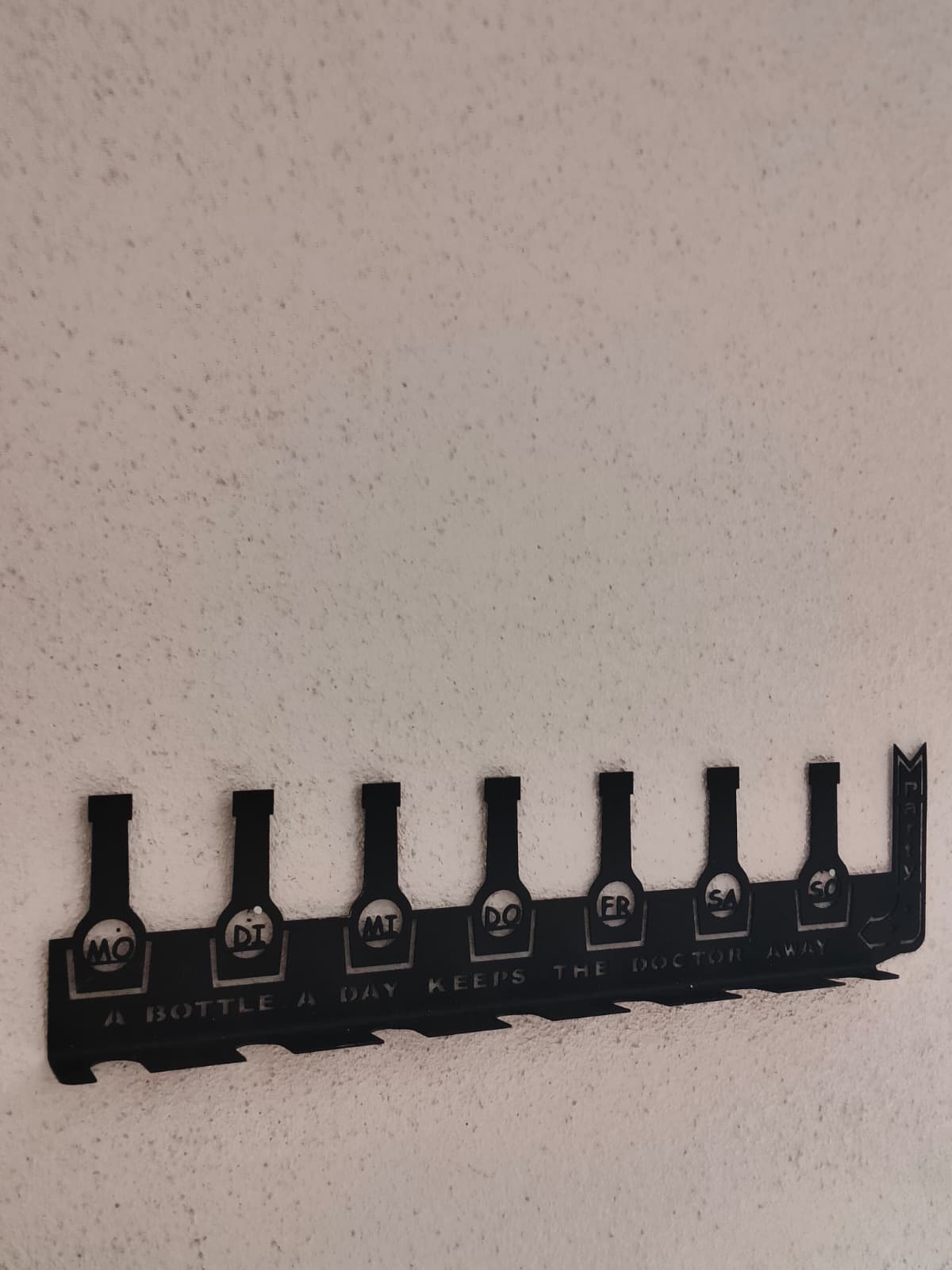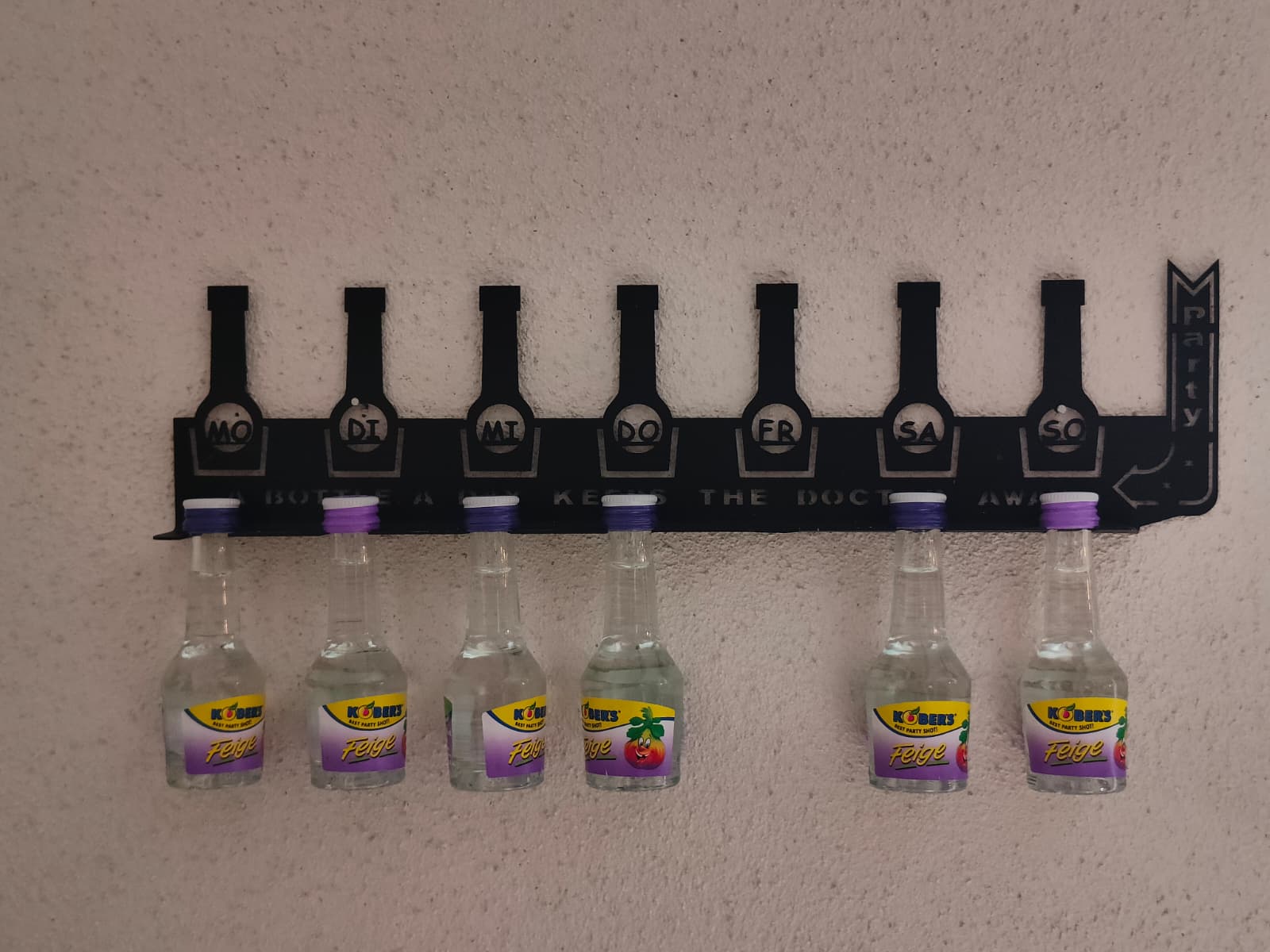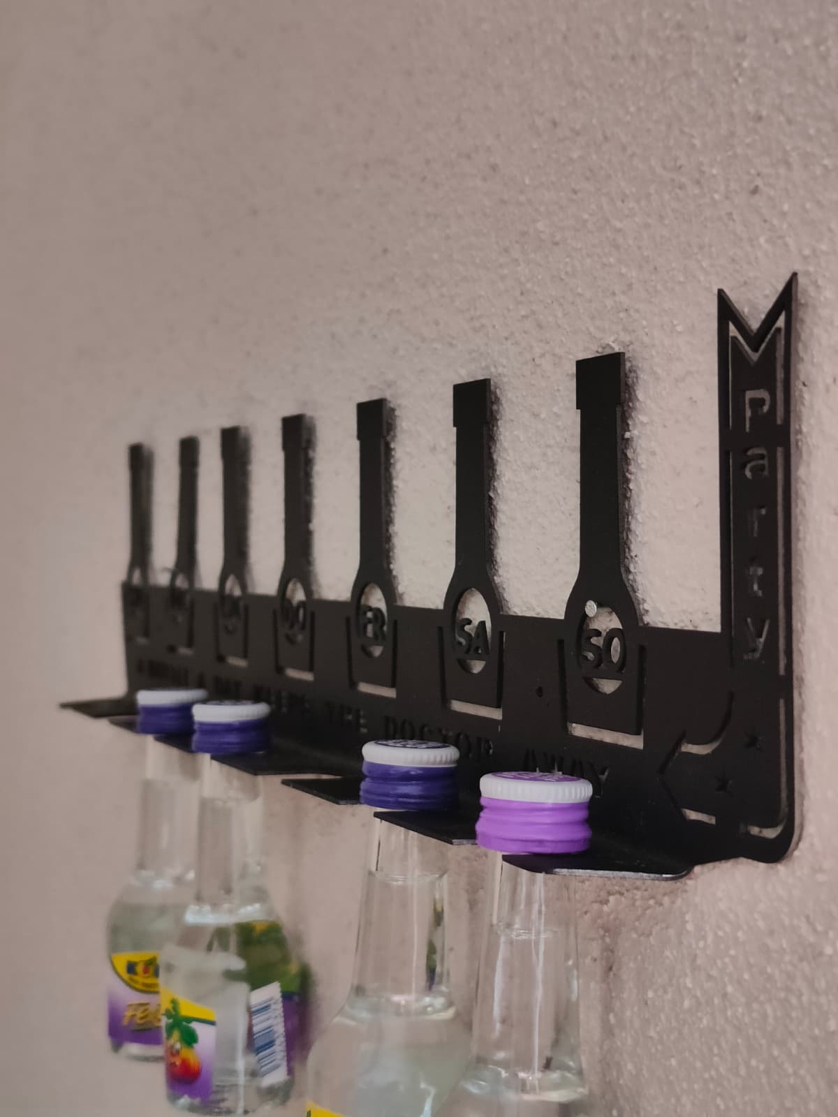 Behalten Sie den Überblick über Ihre Woche und Ihre liebsten Sorten mit diesem einzigartigen Flaschenregal. Das stilvolle Design kombiniert Funktionalität mit einem humorvollen Twist – perfekt für alle, die gerne genießen.